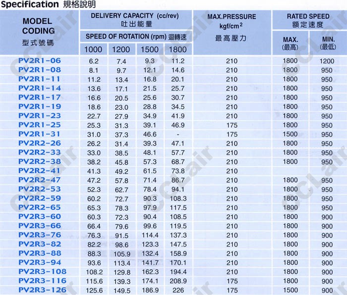 PV2R2-26-F-RAA-10,PV2R2-33,PV2R2-38,PV2R2-41,PV2R2-47,PV2R2-53,PV2R2-59,PV2R2-65,葉片泵