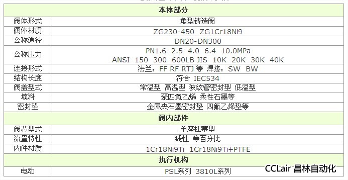 電動(dòng)角型調(diào)節(jié)閥,由PS系列和3610系列直行程電動(dòng)執(zhí)行機(jī)構(gòu)和低流阻直通單座閥組成。電動(dòng)執(zhí)行機(jī)構(gòu)為電子式一體化結(jié)構(gòu),內(nèi)有伺服放大器,輸入控制信號(hào)(4-20mADC或1-5VDC)及電源即可控制閥門開(kāi)度,達(dá)到對(duì)壓力、流量、液位、溫度等工參數(shù)的調(diào)節(jié)。具有動(dòng)作靈敏、連線簡(jiǎn)單、流量大、體積小、調(diào)節(jié)精度高等特點(diǎn)。 角形高壓調(diào)節(jié)閥是針對(duì)調(diào)節(jié)閥在高壓或高壓差、有嚴(yán)重汽蝕、沖蝕的嚴(yán)酷工況條件下壽命短、閥桿易斷裂、襯套易脫落嚴(yán)重問(wèn)題研制開(kāi)發(fā)的產(chǎn)品。它采用多級(jí)節(jié)流形式來(lái)分?jǐn)倝翰?,減少了氣蝕、沖蝕、撓流破壞,大大提高了調(diào)節(jié)閥的使用壽命,特別是用在尿素系統(tǒng)中比普通高壓閥壽命提高2-3倍。閥體為直角形,閥芯為單導(dǎo)向結(jié)構(gòu),閥體流路簡(jiǎn)單,阻力小,特別適用于高粘度,含有懸浮物和顆粒狀介質(zhì)流體的調(diào)節(jié),可避免結(jié)焦、粘結(jié)、堵塞。