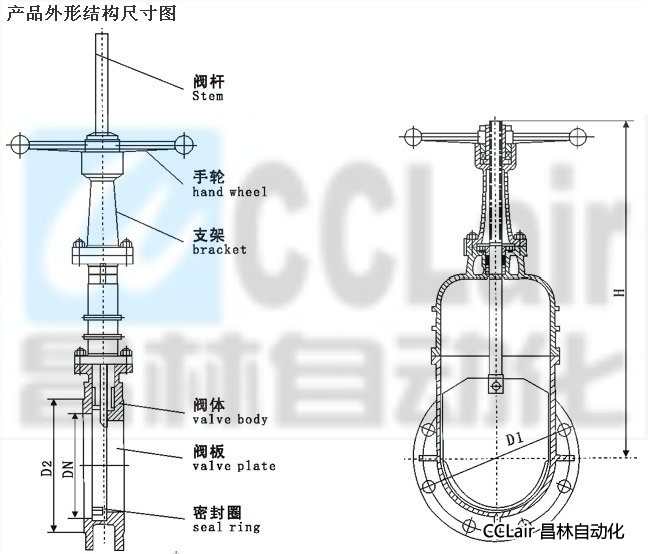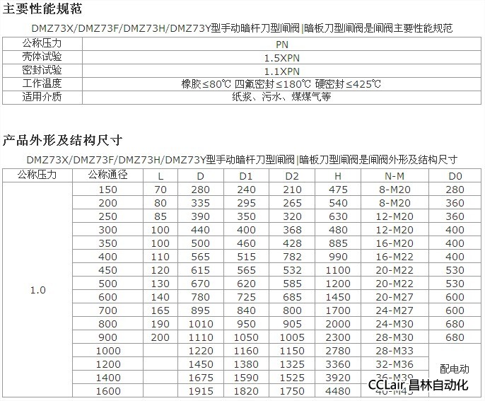 DMZ73X-10,DMZ73F-10,DMZ73H-10,DMZ73Y-10,手動暗桿刀型閘閥