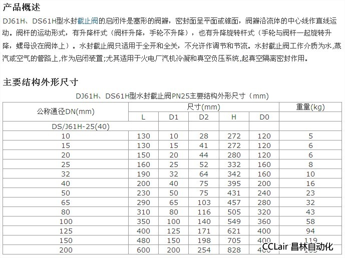 » DJ61H-25,DS61H-25,水封截止閥