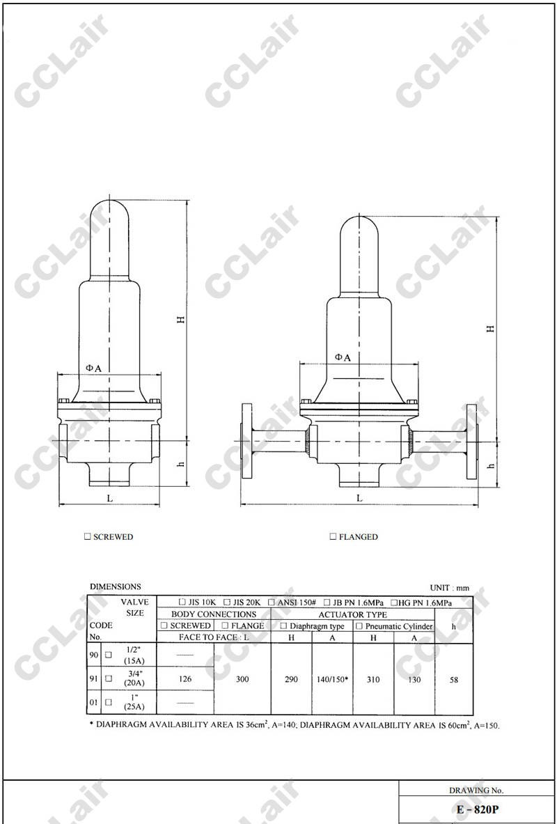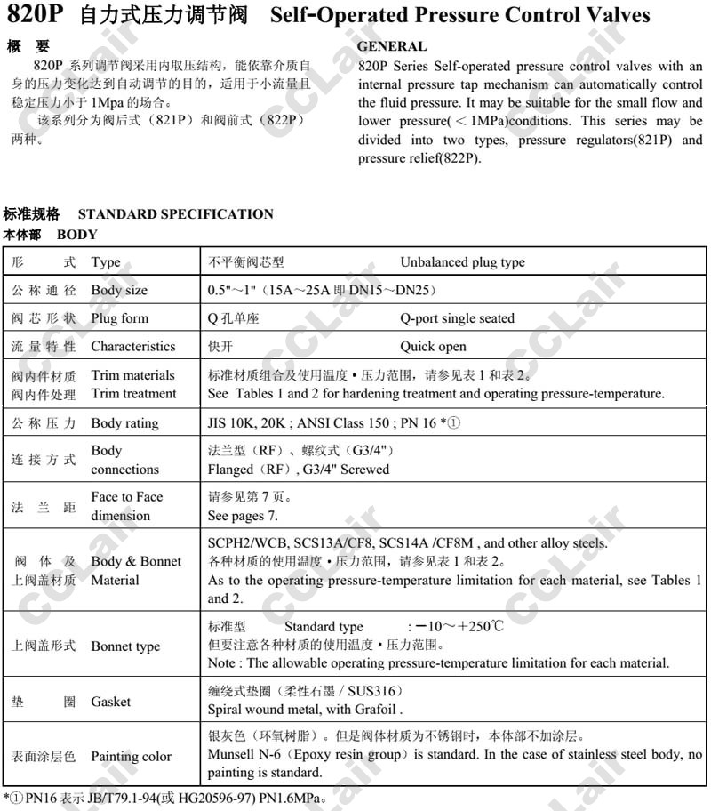 型號: 820P,自力式壓力調(diào)節(jié)閥
