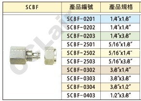 詳細(xì)信息 SCBF-02,SCBF-25,SCBF-03,SCBF-04,SCBF-0403,SCBF-0201,SCBF-2503,SCBF-0303,國鷹KUOIN不銹鋼接頭