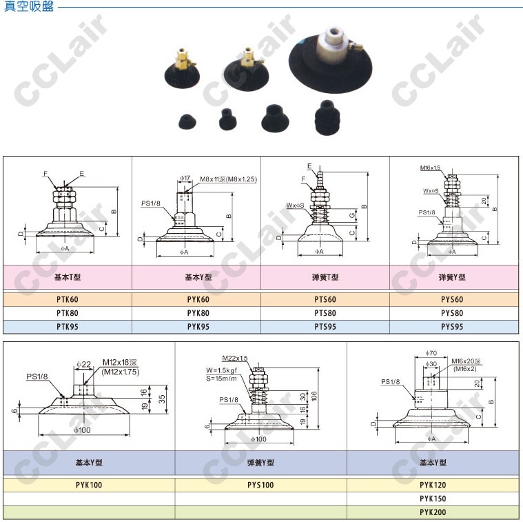 PTK60,PTK80,PTK95,PTS60,PTS80,PTS95,PYS60,PYS80,PYS95,PYS100,國(guó)鷹KUOIN真空吸盤