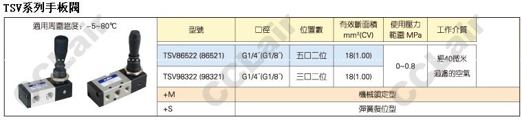 詳細(xì)信息 TSV86522,TSV86521,TSV98322,TSV98321,國(guó)鷹KUOIN手板閥