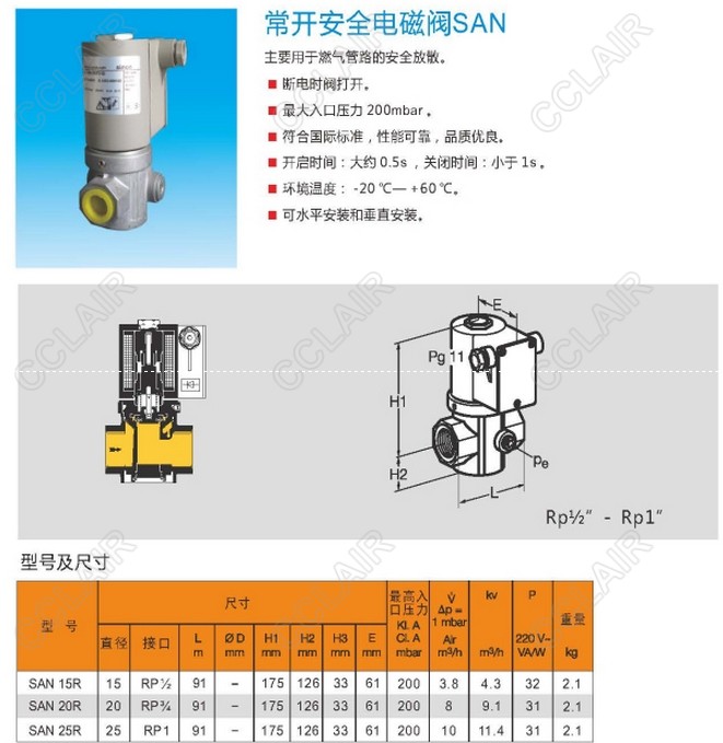 詳細(xì)信息 SAN15R,SAN20R,SAN25R,常開安全電磁閥