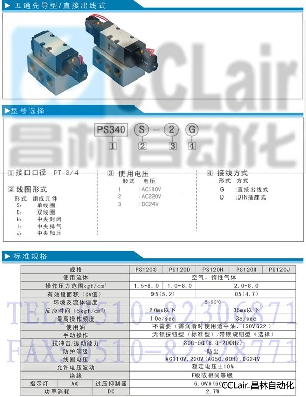 詳細信息 PS340S,PS340D,PS340H,PS340I,PS340J,五通先導型電磁閥
