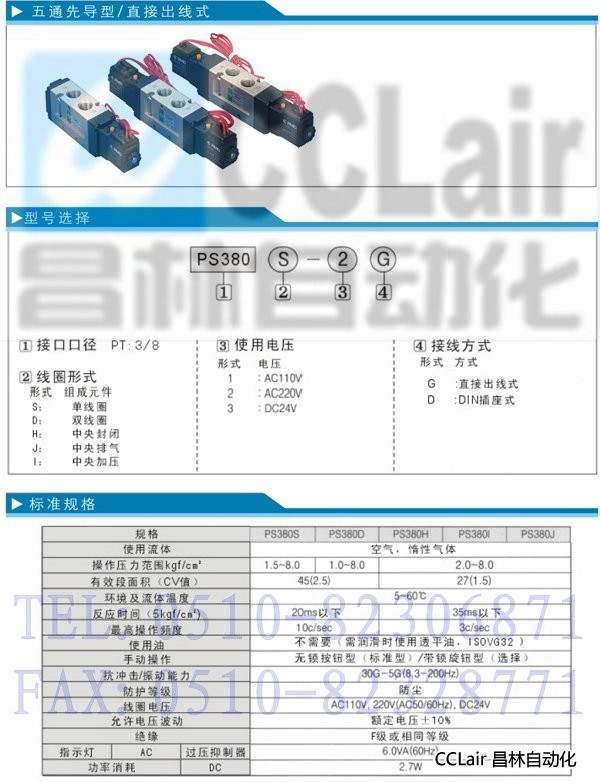 詳細(xì)信息 PS380S,PS380D,PS380H,PS380I,PS380J,五通先導(dǎo)型電磁閥