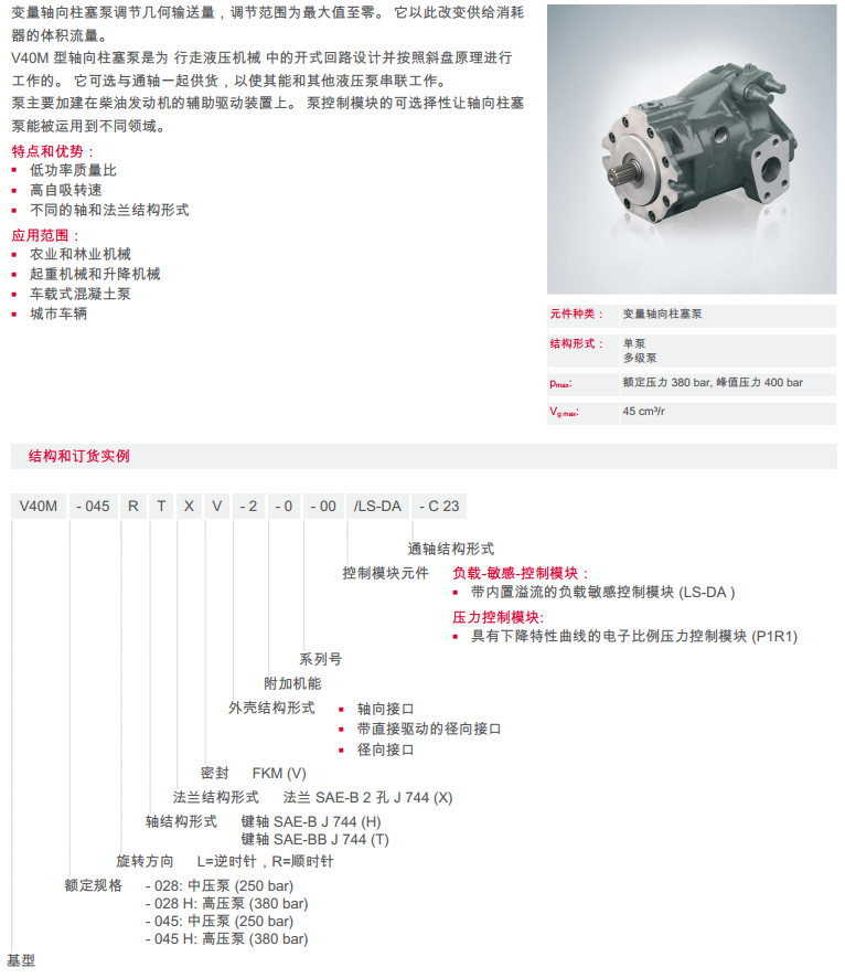 詳細(xì)信息 V40M-028LTXV-2V40M-028 HLTXV-2V40M-045LTXV-2V40M-045HLTXV-2,變量軸向柱塞泵