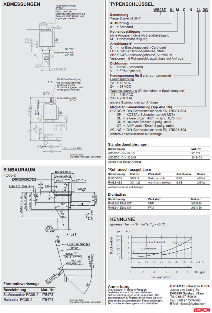 WS08Z-01-C-N-24DG,WS08Z-01-C-N-230AG,HYDAC電磁2/2方向座閥