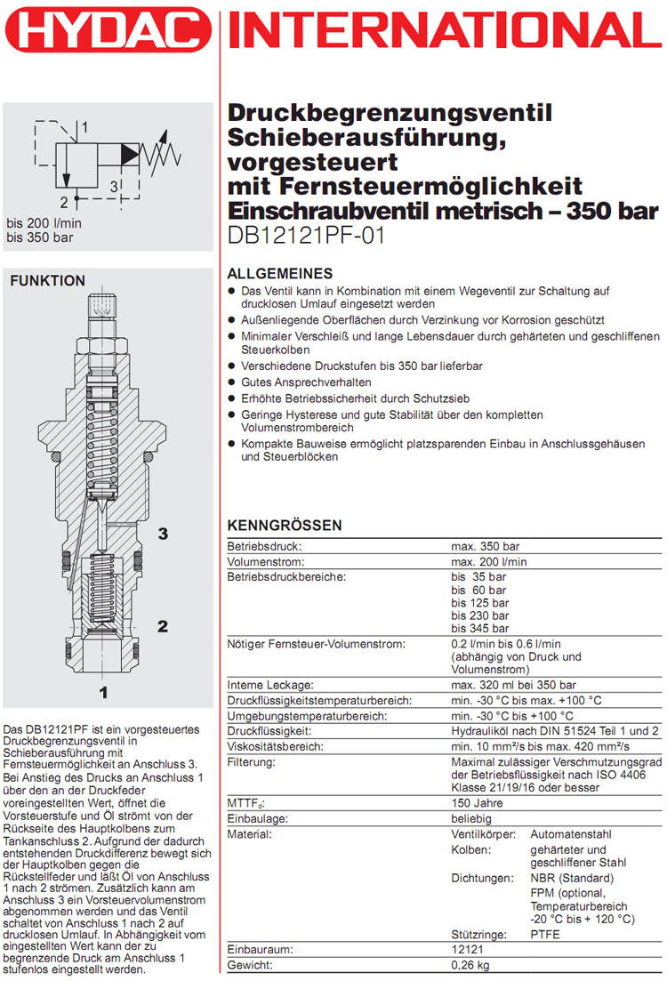 DB12121PF-01-C-N-060V,DB12121PF-01-C-N-230V,DB12121PF-01-C-N-350V,HYDAC先導(dǎo)操作減壓閥