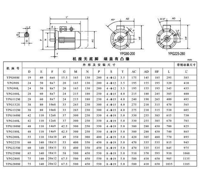 YPG132S-6,YPG132M-6,YPG160M-6,YPG160L-6,YPG180M-6,YPG180L-6,YPG200L1-6,YPG200L2-6,