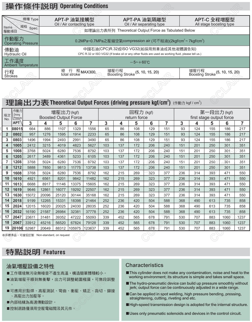 APT-C08015M50N10-2R,APT-C0802M50N10-2R,APT-C0803M50N10-2R,APT-C1005M50N10-2R,APT-C1008M50N10-2R,增壓缸