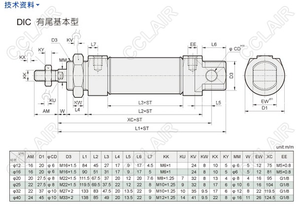 DITC-32N15,DITC-32N25,DITC-32N50,DITC-32N75,DITC-32N100,DITC-32N125氣缸
