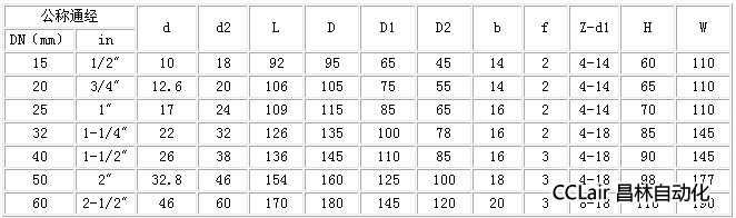 PN1.6MPa主要連接尺寸及重量