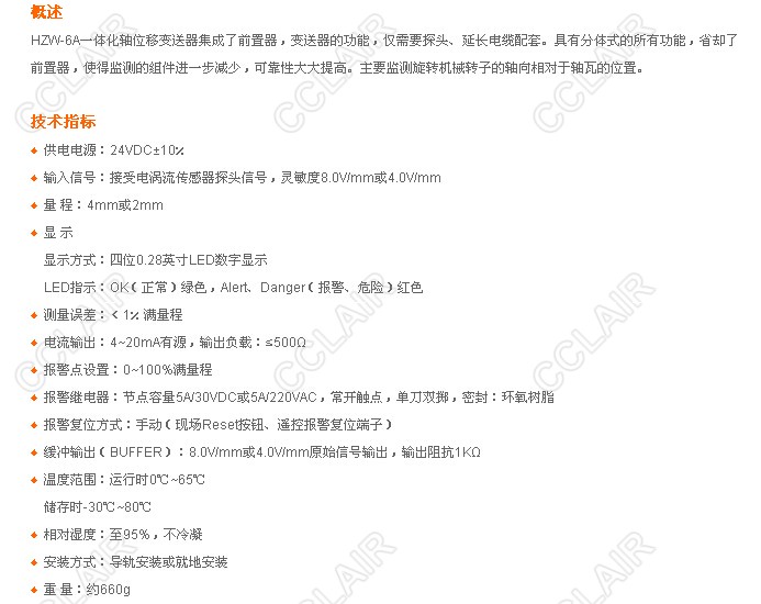 產(chǎn)品: 瀏覽次數(shù):451HZW-6A,一體化軸位移變送器