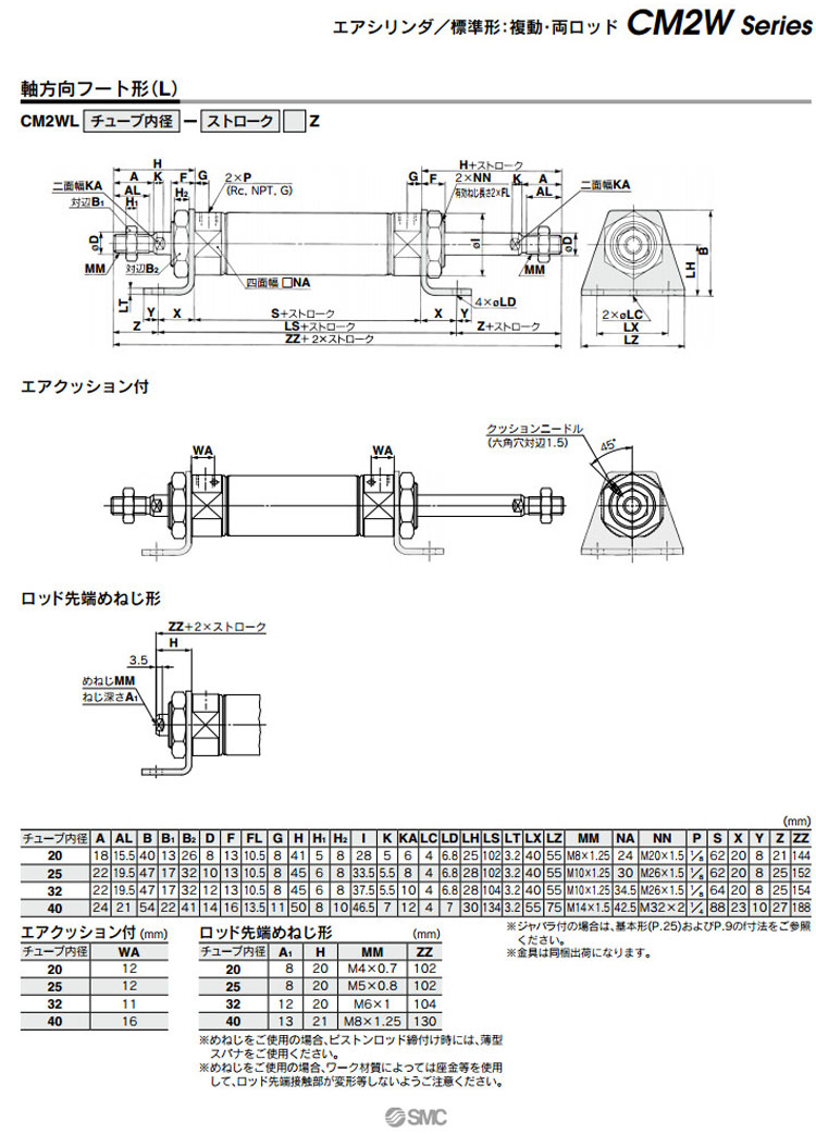 CM2WB,CM2WL,CM2WF,CM2WU,CM2WHB,CM2WHL,CM2WHF,CM2WHU,CM2WHL40-25,SMC標準型氣缸