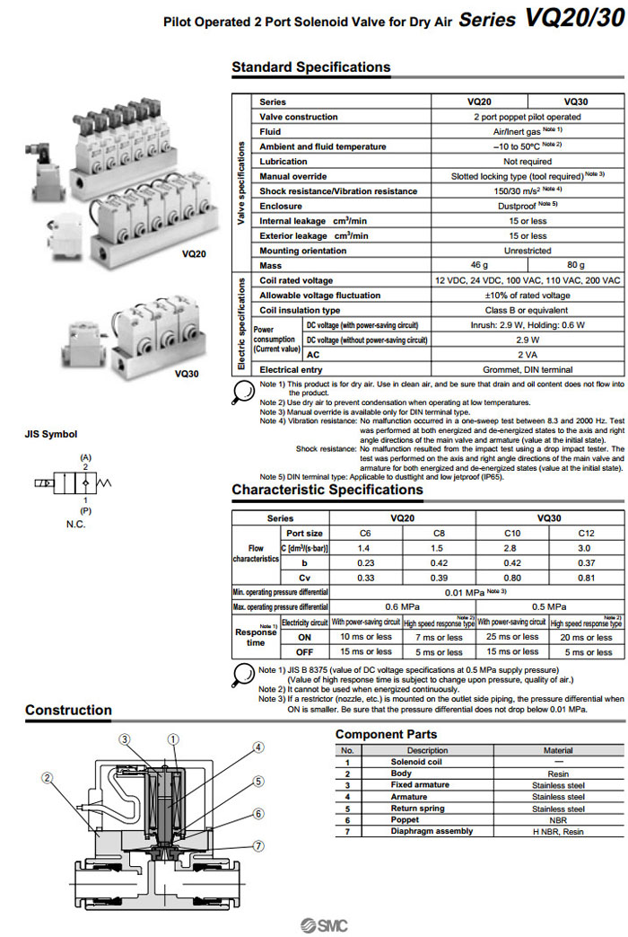 VQ21A1-1G,VQ21M1-1G,VQ31A1-1G,VQ31M1-1G,VQ21A1-1Y,VQ31A1-1Y,SMC先導(dǎo)式2通電磁閥