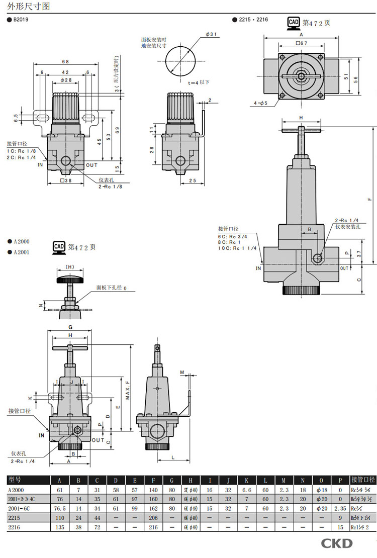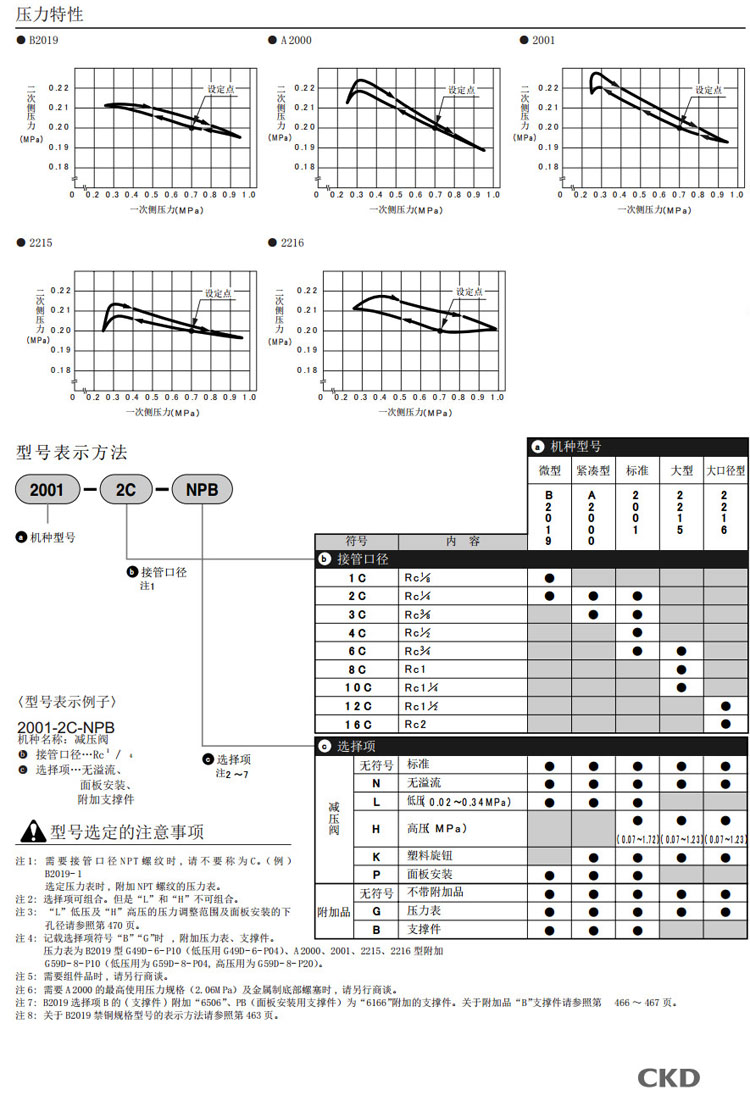B2019-1C,A2000-2C,2001-2C,2215-6C,2215-8C,2215-10C,2216-12C,CKD減壓閥
