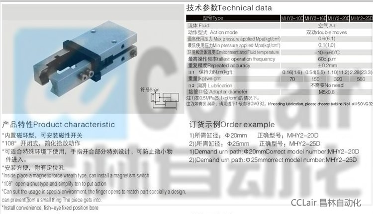 MHY2-10D,MHY2-16D,MHY2-20D,MHY2-25D,氣動手指