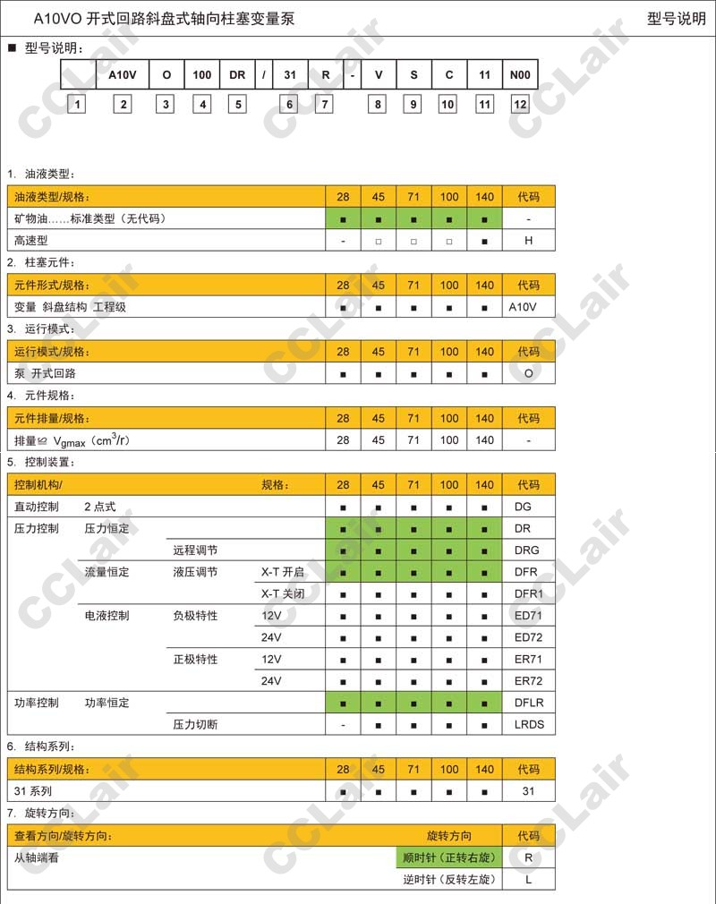 A10VO71DFLR/31R-VUC41NOO,A10VO71DFLR/31R-VUC42NOO,A10VO71DFLR/31R-VUC41K01,CCLair A10VO71DFLR/31R-VUC42K01,