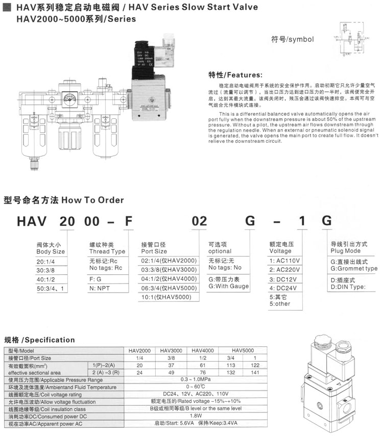 HAV2000,HAV3000,HAV4000,HAV5000,穩(wěn)定啟動(dòng)電磁閥