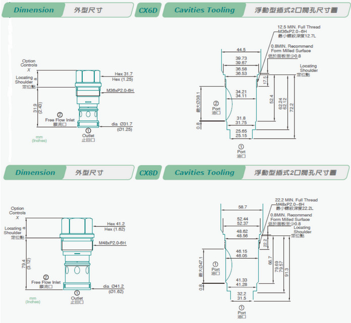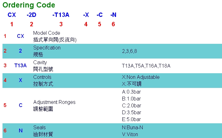 CX2D-T13A-XAN,CX3D-T5A-XBN,CX6D-T16A-XCN,CX8D-T18A-XDN,CX2D-T13A-XEN,HYDROMAX插式單向閥