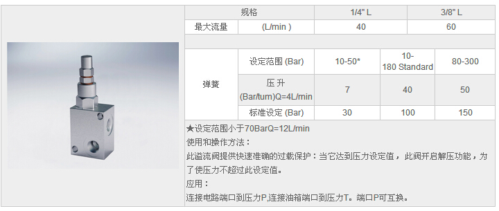 詳細信息 HYVMP 1/4" L,HYVMP 3/8" L,小流量溢流閥