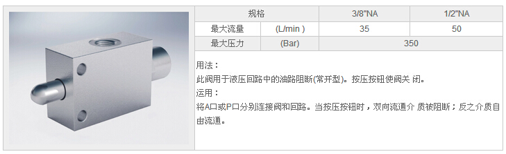 詳細(xì)信息 HYV-101 3/8" NA,HYV-121 1/2" NA,按鈕式阻斷閥