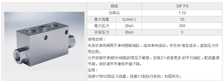 詳細(xì)信息 HYVBPSE 3/8" PS,外單先導(dǎo)式單向閥