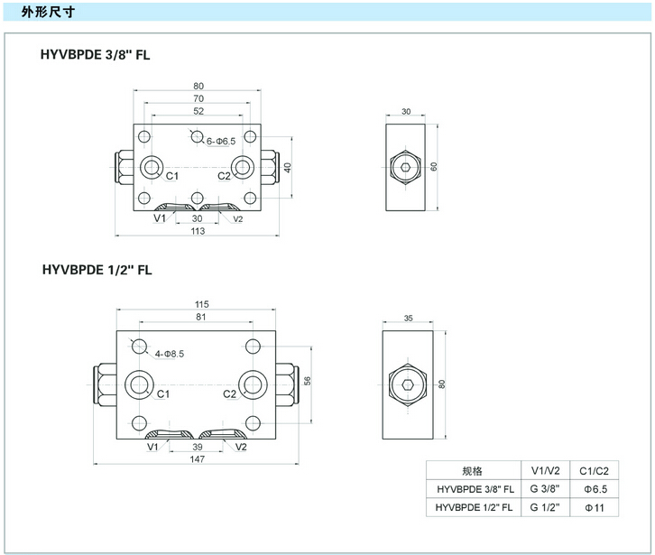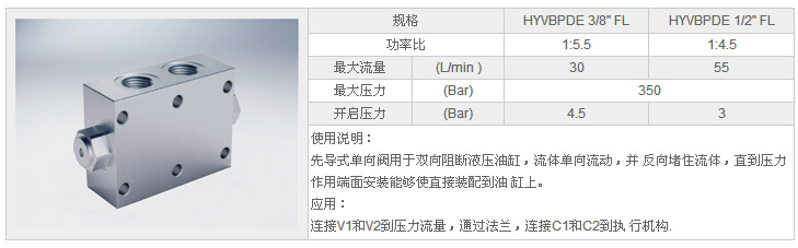 詳細信息 HYVBPDE 3/8" FL,HYVBPDE 1/2" FL,先導(dǎo)式雙單向閥