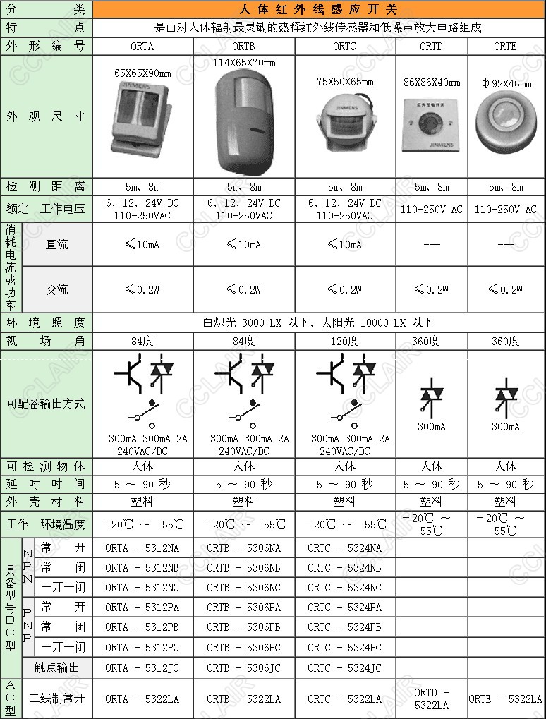 詳細(xì)信息 ORTA-5312NA,ORTB-5306NA,ORTC-5324NA,ORTA-5312NB,ORTB-5306NB,ORTC-5324NB,ORTA-5312NC,人體紅外線感應(yīng)開關(guān)