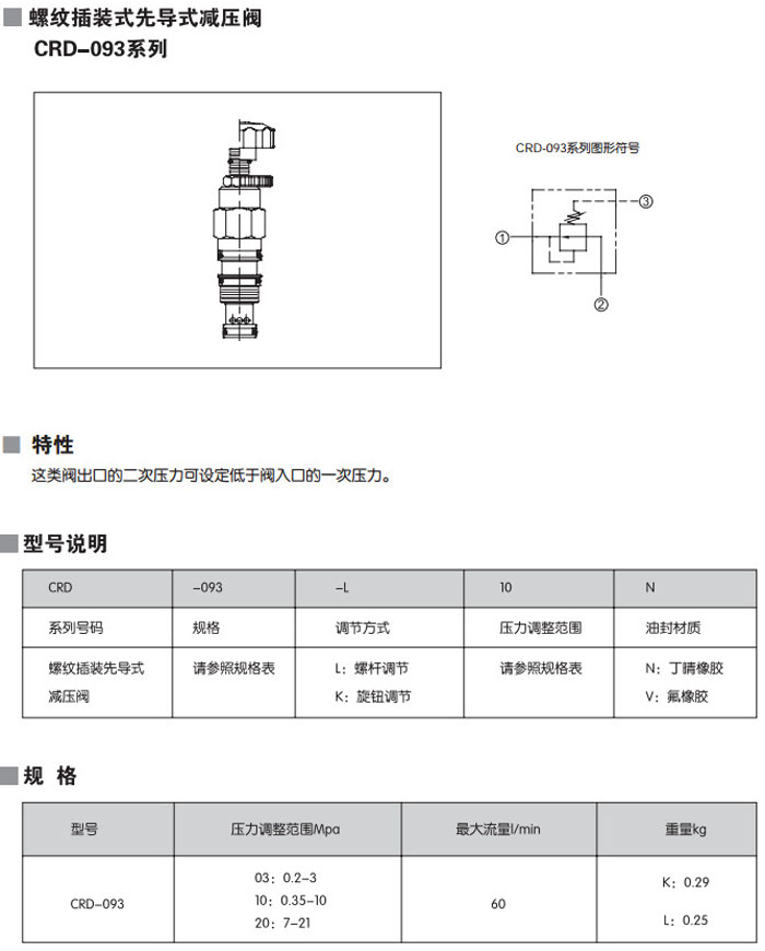 CRD-093-L03N,CRD-093-L10N,CRD-093-L20N,CRD-093-K03N,CRD-093-K10N,CRD-093-L30N,螺紋插裝式先導(dǎo)式減壓閥 詳細(xì)信息 CRD-093-L03N,CRD-093-L10N,CRD-093-L20N,CRD-093-K03N,CRD-093-K10N,CRD-093-L30N,螺紋插裝式先導(dǎo)式減壓閥
