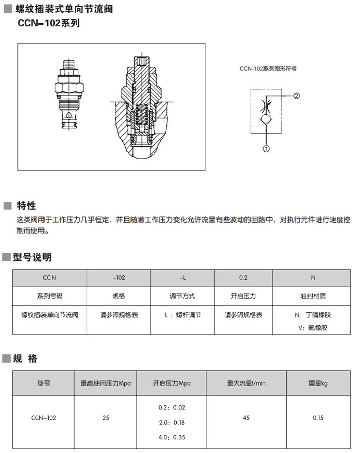 CCN-102-L0.2N,CCN-102-L2.0N,CCN-102-L4.0N,CCN-102-L0.2V,CCN-102-L2.0V,CCN-102-L4.0V,螺紋插裝式單向節(jié)流閥 詳細信息 CCN-102-L0.2N,CCN-102-L2.0N,CCN-102-L4.0N,CCN-102-L0.2V,CCN-102-L2.0V,CCN-102-L4.0V,螺紋插裝式單向節(jié)流閥