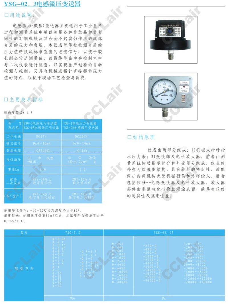 » YSG-02,YSG-03,電感微壓變送器,CCLair