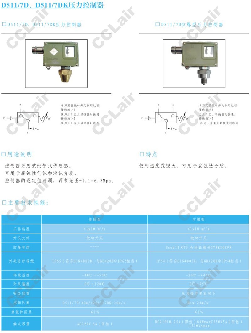詳細(xì)信息 D511/7D,D511/7DK,壓力控制器,CCLair
