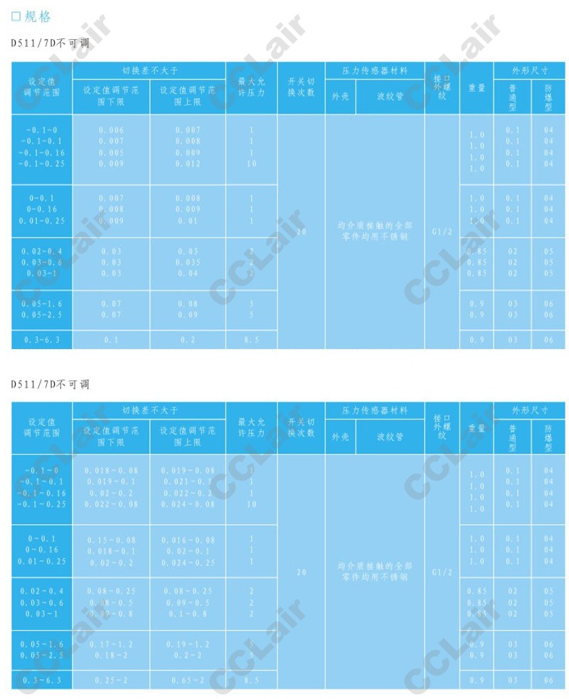 D511/7D,D511/7DK,壓力控制器,CCLair