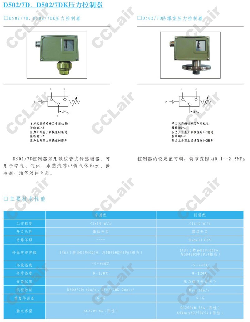 詳細(xì)信息 D502/7D,D502/7DK,壓力控制器,CCLair
