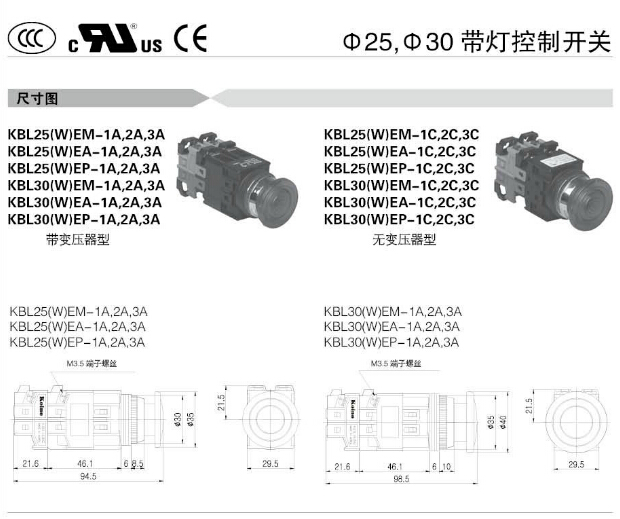 KBL25M,KBL25MP,KBL25AT,KBL25AP,KBL25ER,KBL25EM,KBL25EA,KBL25EP,KBL25M-1A,KoinoΦ25帶燈控制開關(guān) |
