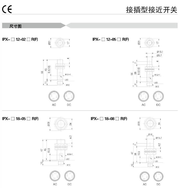IPX-D12-02E1R,IPX-D18-05E1R,IPX-D30-10E1R,IPX-2D12-02A1R,IPX-2D18-05A1R,Koino接插型接近開關(guān) |