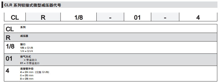 詳細信息 CLR1/8-01-4,CLR1/8-01-6,CLR1/8-01-8,CLR1/4-01-4,CLR1/4-01-6,CLR1/4-01-8,camozzi鉸接式微型減壓器