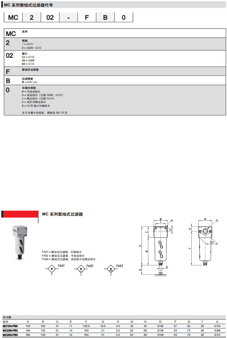 MC104-FB00,MC138-FB03,MC102-FB05,MC204-FB04,camozzi聚結(jié)式過(guò)濾器