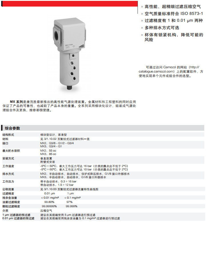 MX2-3/8-FC00,MX2-1/2-FC03,MX3-1/2-FC05,MX3-3/8-FC08,camozzi聚結(jié)式過(guò)濾器