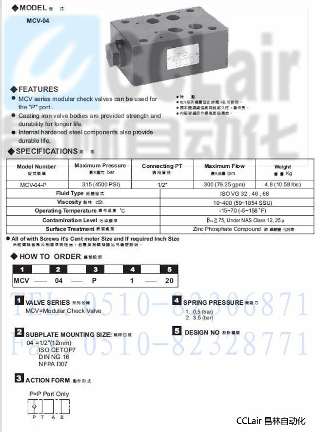 產(chǎn)品: 瀏覽次數(shù):781MCV-04-P,積層型止逆閥,