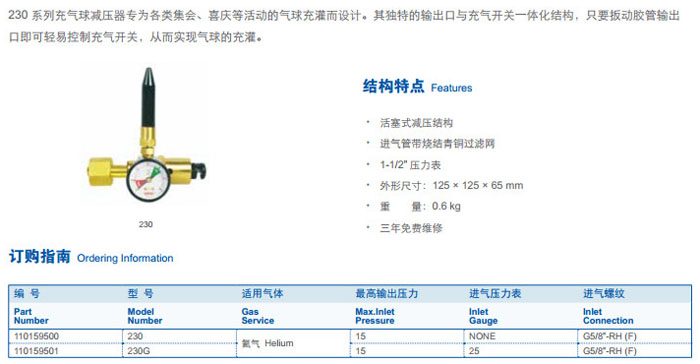 230,230G,充氣球減壓器 |