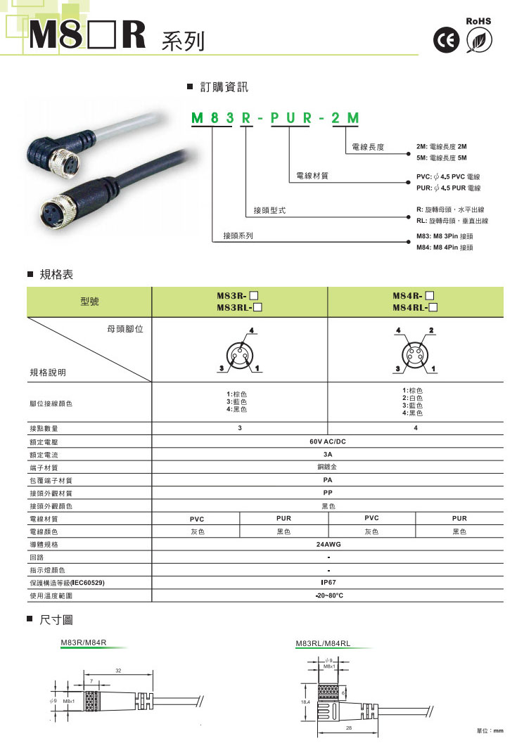 M83R-PUR-2M,M83R-PUR-5M,M83R-PVC-2M,M83R-PVC-5M,M83RL-PUR-2M,M83RL-PUR-5M,