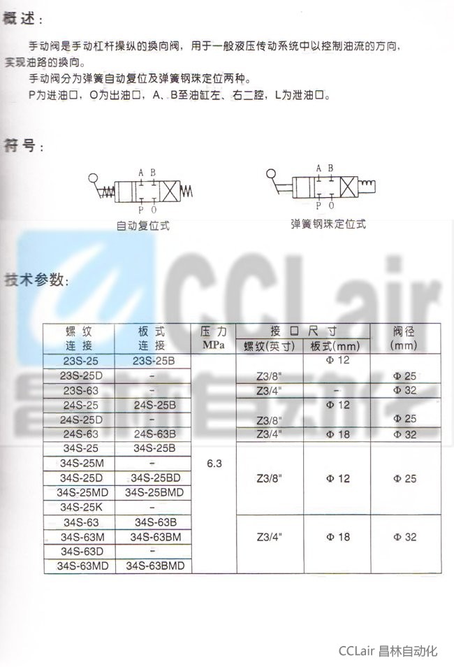34S-2DM,34S-25K,23S-63,24S-63,34S-63,34S-63M,34S-63D,34S-63MD,手動(dòng)換向閥