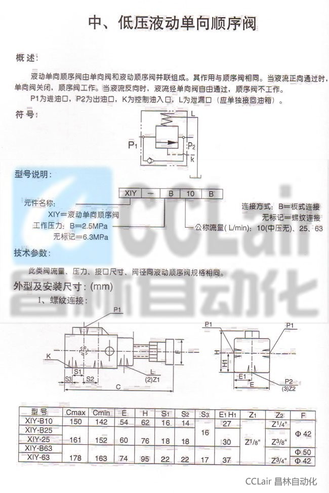 XIY-B10B,XIY-B25B,XIY-B63B,XIY-25B,XIY-63B,液動單向順序閥