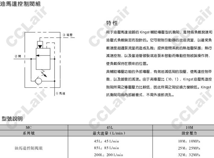 MC-45L-10M,MC-85L-10M,MC-200L-10M,MC-45L-25M,MC-85L-25M,MC-200L-25M,MC-45L-32M,油馬達控制閥組
