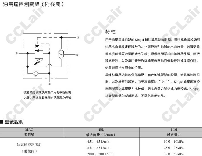 詳細(xì)信息 MAC-45L-10M,MAC-85L-10M,MAC-85L-25M,MAC-200L-25M,MAC-45L-32M,MAC-85L-32M,油馬達(dá)控制閥組