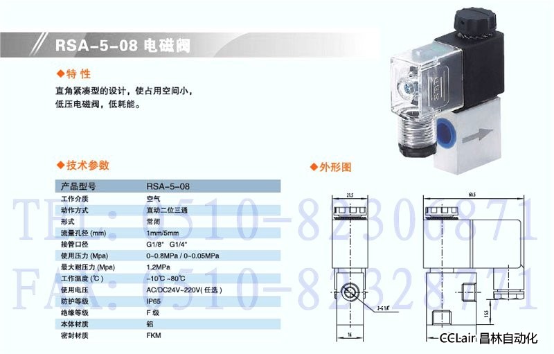產(chǎn)品: 瀏覽次數(shù):518RSA-5-08,直動二位三通電磁閥